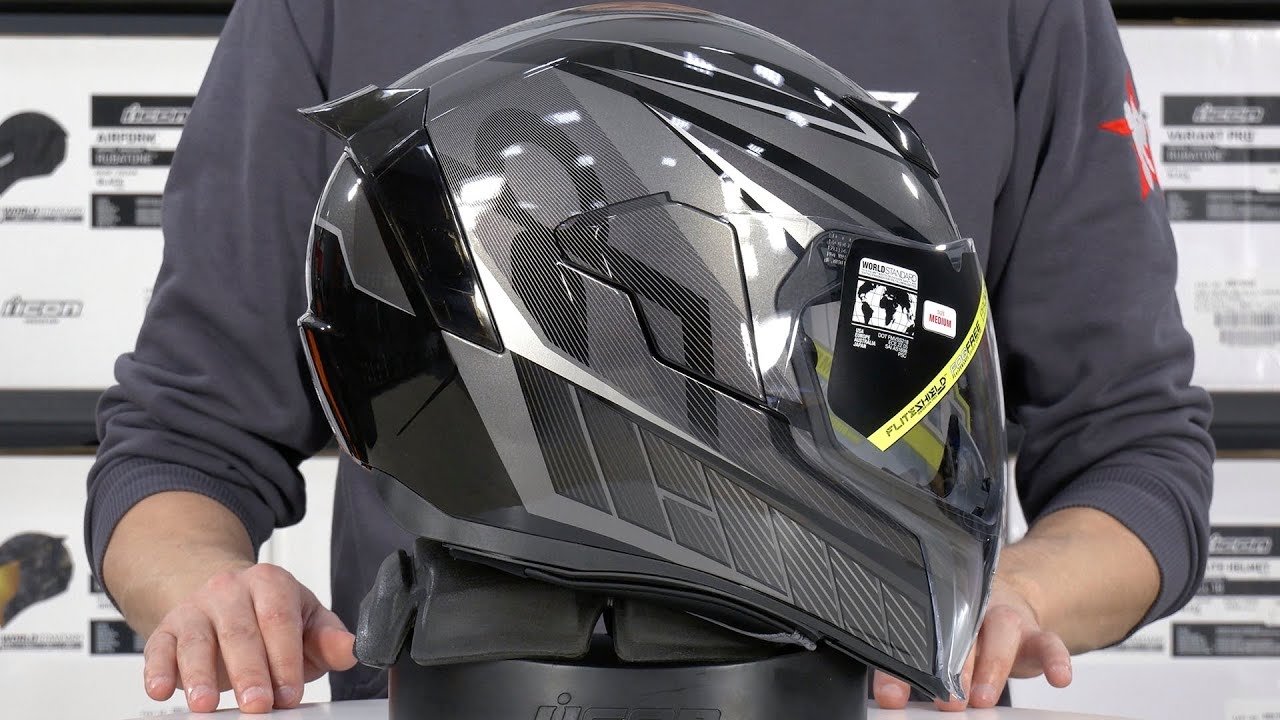 Корпус мотошлема PC-ABS ICON® AIRFLITE был создан под строгим контролем стандартов качества, существующим на современном рынке, посредством экструзионно-компрессионном формировании поликарбоната. Вкладыши из вспененного полистирола двойной плотности ICON® AIRFLITE спроектированы таким образом, чтобы обеспечить максимальное поглощение силы ударов и ее рассеивание. Кроме того, оба вкладыша снабжены рядом направленных воздушных каналов для распределения потока воздуха из внешней системы вентиляции.