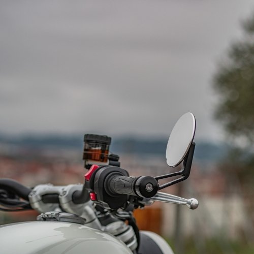 Мотогаджет эксклюзивно представляет мото зеркала изготовленные по запатентованной технологии. Плазменная обработка поверхностного слоя алюминия создаёт зеркальную поверхность, которая не окисляется и имеет стойкость к царапинам. Зеркало невозможно разбить из-за отсутствия стеклянного элемента. Зеркальная поверхность имеет небольшой изгиб для лучшего обзора. Отсутствуют рамки по краям. Все детали имеют качественное анодированное покрытие. Винты и шарнир из нержавеющей стали. Благодаря своей инновационной конструкции зеркала обладают малым весом и толщиной.
