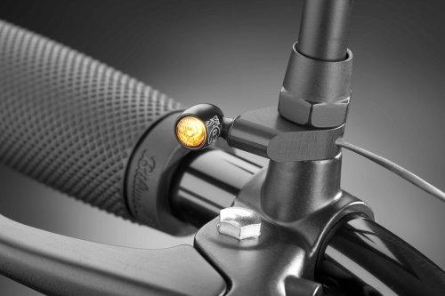 Этот адаптер предлагает простое минималистичное решение для крепление поворотника в районе машиноц сцепления и тормоза, на шпильке зеркала. С
