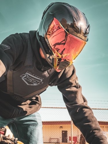 Мотозащита ICON® прочна и разработана таким образом, чтобы выдерживать суровые воздействия со стороны асфальта, но никакая защита не может пережить все возможные мотоциклетные аварии. В случае, если вам доведется попасть в столкновение в вашей мотозащите Icon, тщательно осмотрите изделие на предмет признаков структурных повреждений (фрагментов с сильным истиранием, дыр, поврежденных швов и т.д.). При наличии повреждений, или если у вас нет уверенности в том, являются ли повреждения структурными, мотозащиту необходимо заменить. В большинстве мотозащит Icon поверх текстильной основы используется покрытие, усиливающее общую матрицу ткани. Неправильная очистка мотозащиты может нарушить целостность этого покрытия, что приведет к разрушению материала основы и снижению защитных свойств.